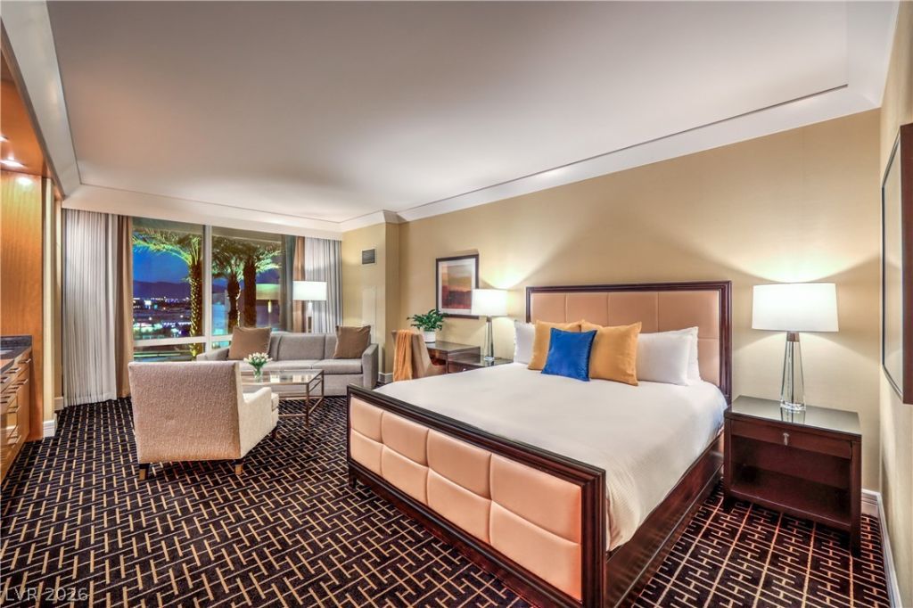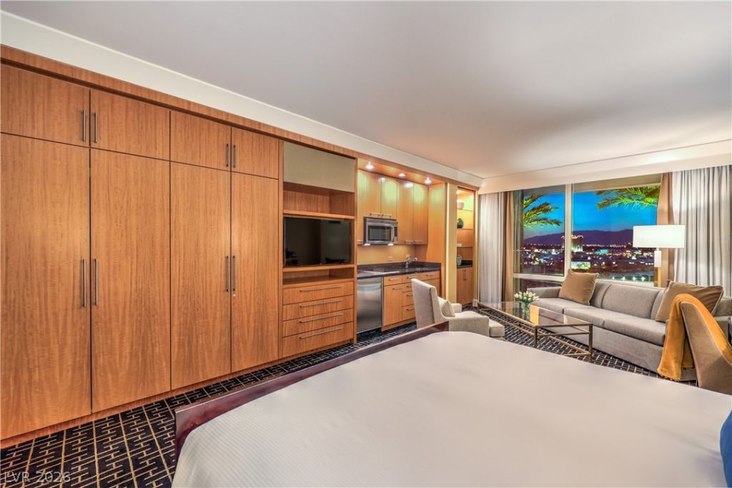 Elevate your lifestyle with luxurious Las Vegas living in this sophisticated 533-square-foot studio condominium, perched on the 16th floor of the iconic Trump International Hotel & Tower. Enjoy breathtaking panoramic views that capture the vibrant energy of Downtown Las Vegas alongside the majestic surrounding mountain ranges?creating a serene yet exciting backdrop right from your floor-to-ceiling windows. This impeccably designed residence boasts elegant crown moldings, rich custom cabinetry, and a plush king-sized bed for ultimate comfort. The modern kitchenette is perfect for effortless entertaining or everyday convenience, while the opulent marble bathroom indulges with a double-sink vanity and an expansive six-foot soaking tub?ideal for unwinding after a night on the town. Seize the opportunity to own your own slice of elevated elegance in Las Vegas.