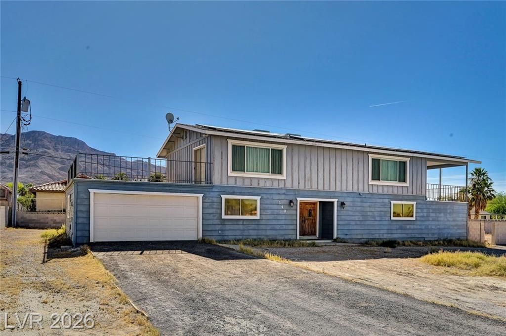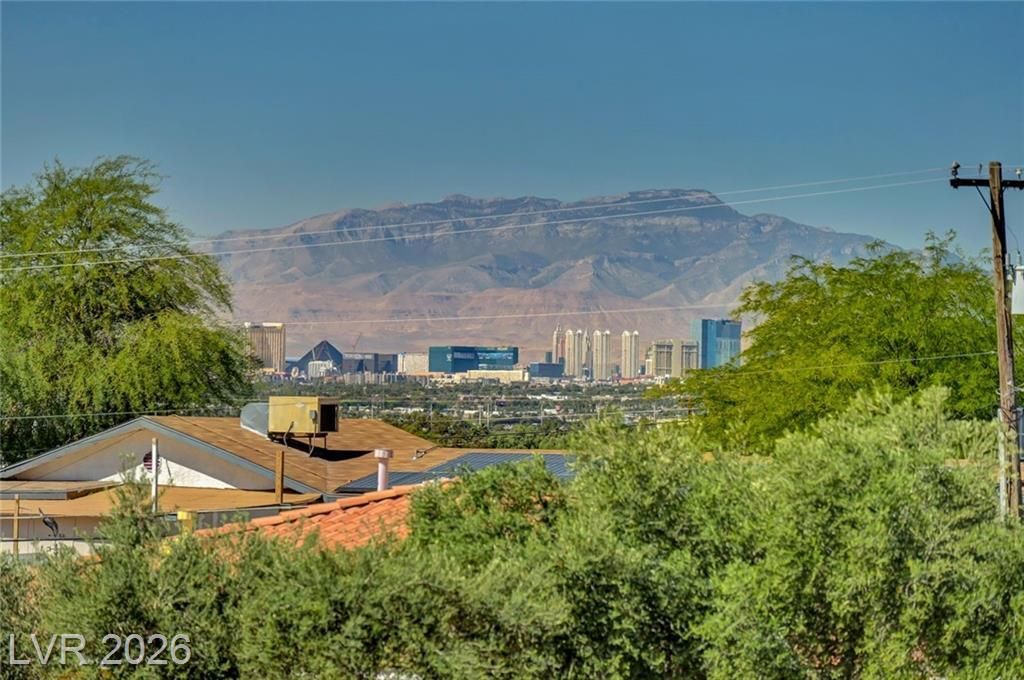 Amazing Strip and Mountain View! Featuring 4 bedrooms and 2 full baths on the first floor, this property offers a functional layout with a large great room, half-bath and dining/kitchen area on the second story to maximize those incredible vistas! In addition, two large decks offer exceptional outdoor living and views! Situated on over 1/2 acre with a 2-car garage, separate storage room and no HOA, this home provides a fantastic opportunity to create your dream space!