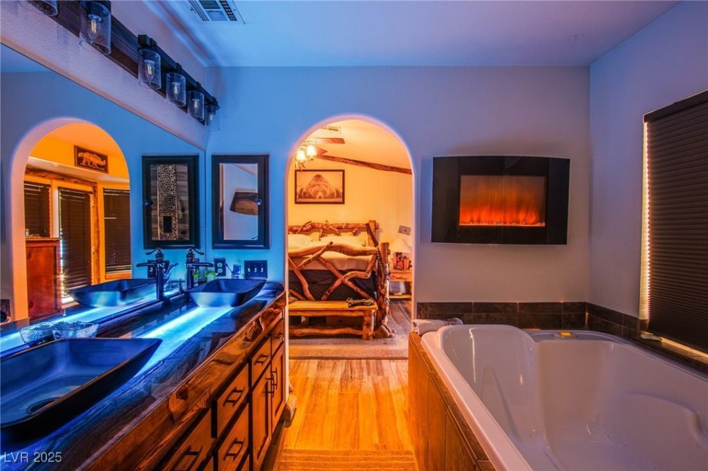 WOW HUGE LOT with Gated RV Parking and NO HOA! Full RV Hookups, 50 amp service, RV sewer and water connection. Room for lots of toys! Solar = super low power bills / owner averages $19 per month even in the SUMMER! ***OWNER PAID UTILITIES / UTILITIES INCLUDED IN RENT*** Starlink Internet Included! New HVAC Unit! Custom hickory cabinets, granite counters with custom built island with wireless chargers, stainless appliances! Primary bath is a spa retreat, with double wide soaking jet tub, custom mesquite epoxy resin vanity with LED backlighting, spa like shower with individual jets & oversized rain shower head and fireplace!! 120 inch TV in Living Room! Be PROUD of where you live, this one is LOADED with UPGRADES throughout!!